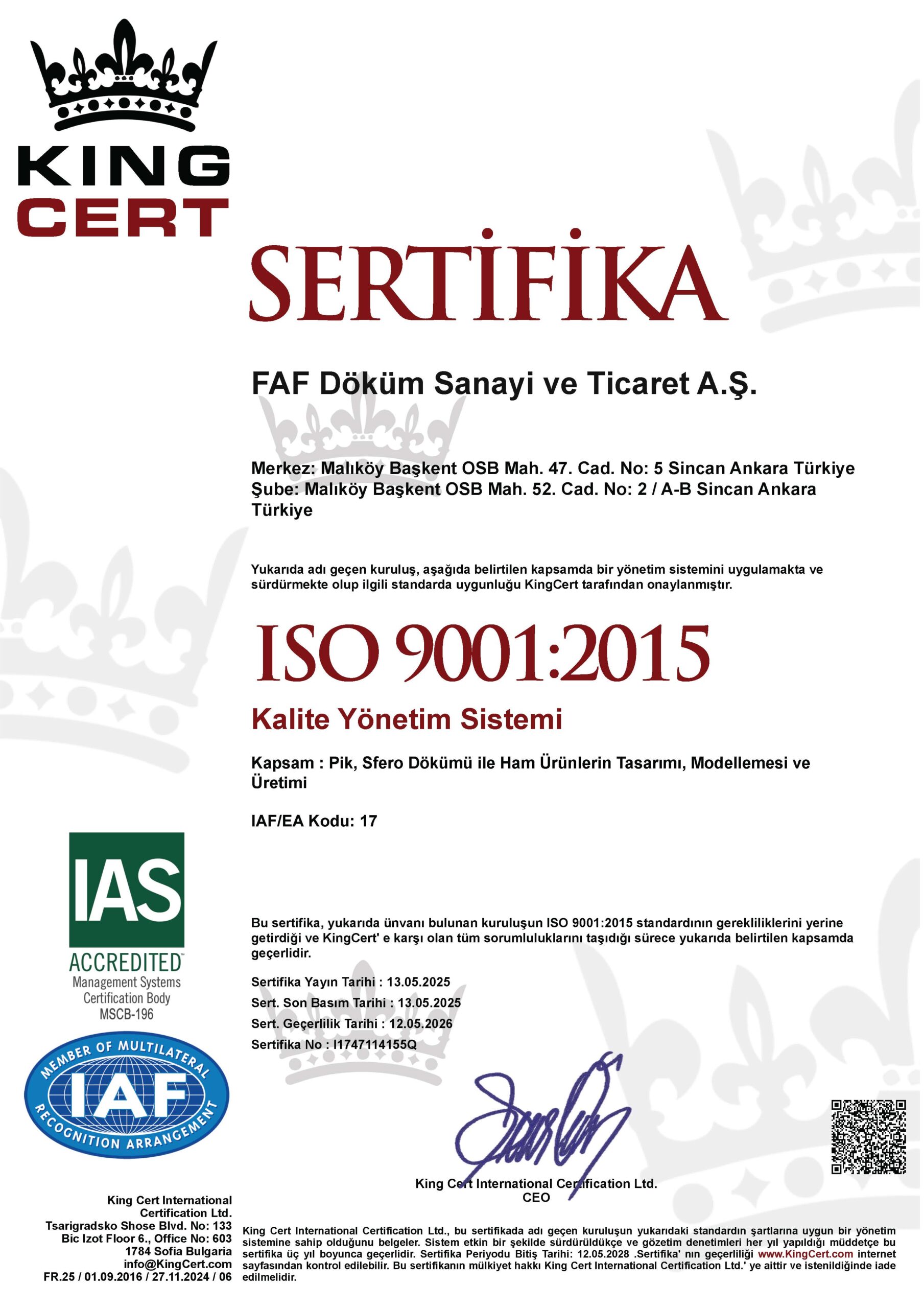 FAF DÖKÜM ISO 9001:2015 FAF DÖKÜM ISO 14001:2015 FAF DÖKÜM ISO 45001:2018 PED-(201468EU)-AD-2000-Merkblatt-W0 FAF DÖKÜM ISO 50001:2018 FAF DÖKÜM ROHS PİK FAF DÖKÜM REACH SFERO PİK FAF DÖKÜM ROHS SFERO